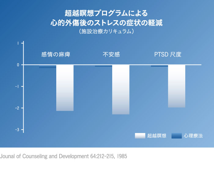 さらなる研究も、他の瞑想法は不安、鬱、不眠、および他のストレス症候群に対して超越瞑想とは異なる効果を示します。超越瞑想テクニックの効果は他とは異なることが、継続的な研究により立証されています